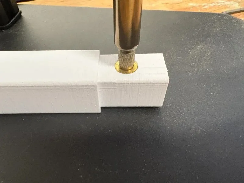 Use a soldering iron to install the 4x M5 heat set threaded inserts into the bottom of each of the risers.