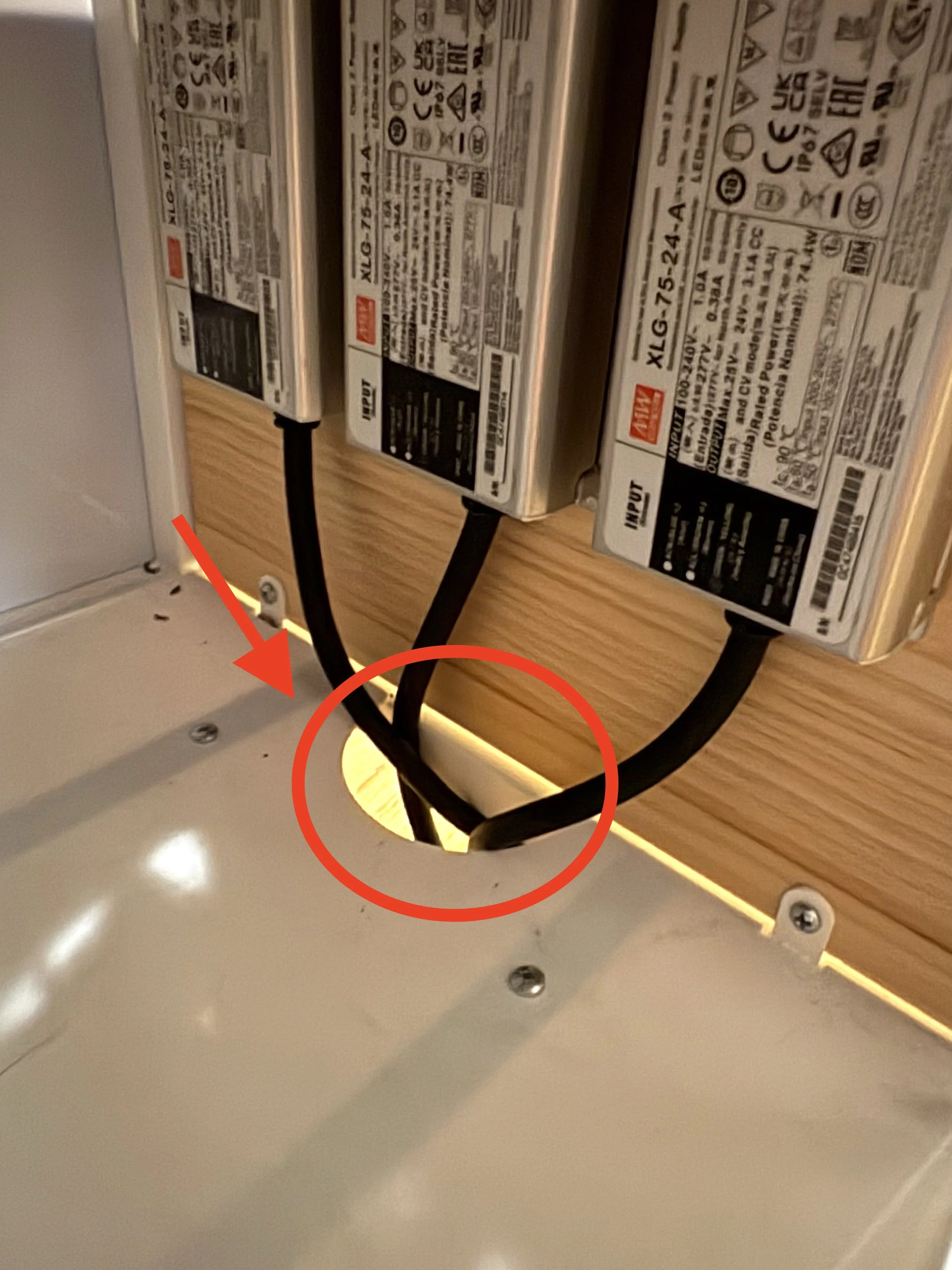 Feed the wires for the pump and the lights (up to 3 depending on how many levels your garden is) through either the top right cut out (Option 1), or the bottom right cutout (Option 2) . I personally prefer the top right cutout. You only need to feed enough of the wires though to reach the power strip just behind the cutout.